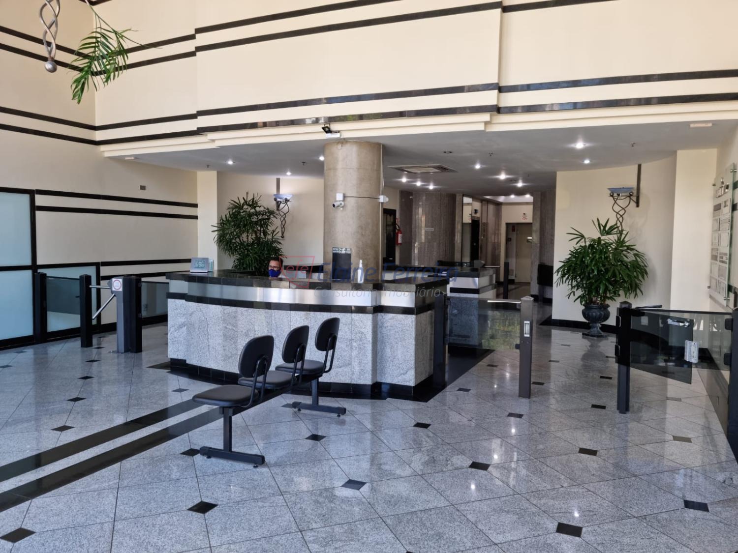 Edifício comercial, no Cambuí. Fachada imponente. Portaria 24h. Hall de entrada super bem decorado.